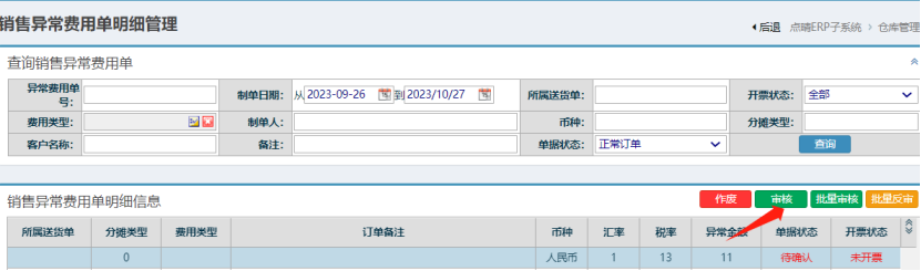 點晴模切ERP-如何審核或作廢新增的銷售異常費用單
