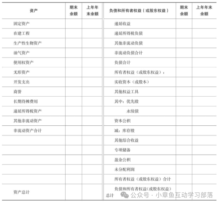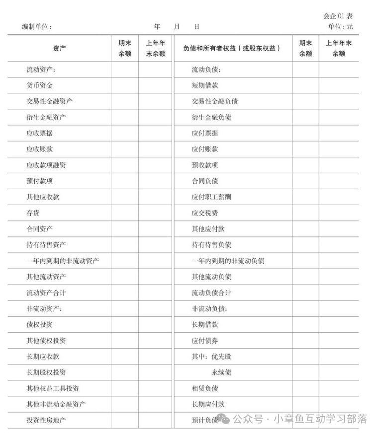 一.資產負債表 資產負債表(the Balance Sheet)亦稱財務狀況表,表示企業在一定日期(通常為各會計期末)的財務狀況(即資產、負債和業主權益的狀況)的主要會計報表。 資產負債表是反映企業在某一特定日期(如月末、季末、年末)全部資產、負債和所有者權益情況的會計報表,是企業經營活動的靜態體現,根據“資產=負債+所有者權益”這一平衡公式,依照一定的分類標準和一定的次序,將某一特定日期的資產、負債、所有者權益的具體項目予以適當的排列編制而成。它表明企業在某一特定日期所擁有或控制的經濟資源、所承擔的現有義務和所有者對凈資產的要求權。它是一張揭示企業在一定時點財務狀況的靜態報表。資產負債表利用會計平衡原則,將合乎會計原則的資產、負債、股東權益”交易科目分為“資產”和“負債及股東權益”兩大區塊,在經過分錄、轉賬、分類賬、試算、調整等等會計程序后,以特定日期的靜態企業情況為基準,濃縮成一張報表。其報表功用除了企業內部除錯、經營方向、防止弊端外,也可讓所有閱讀者于最短時間了解企業經營狀況。 資產負債表: