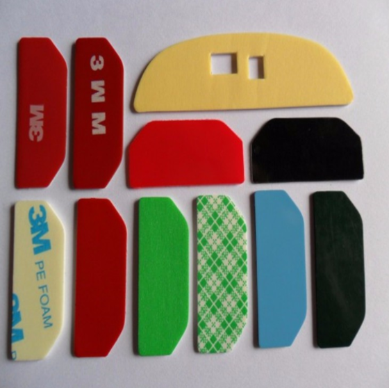 泡棉的屬性,有壓縮比,厚度、密度、硬度、顏色等一些主要特性。壓縮比是指最大限度能壓縮多少比例。比如需要比例為95%,則可以理解成在模切過程中,只有整體壓縮到整體厚度的95%之后,它才會被切斷。 模切常用的泡棉材料有:PORON、圣戈班、EVA、EPDM、吸音泡棉、PU泡棉等。 1.切泡棉時所遇到的情況:變形,因為泡棉很軟。刀去沖的時候就將泡棉擠扁了,再將它切斷,因為刀模有內外之分,當內部壓力比外部壓力大的時候進行沖切,會讓沖切橫截面變形,有時候會出現凹進去,或者傾斜的情況。而正確的泡棉沖切后橫截面是直的。若是橫截面沖不好就是彎的。 2.要想將泡棉沖出來同時排廢,用水切割方法或者兩刀套切的方法來做。而有些師傅沒法做到將產品切得很直且能夠將廢料排掉,其實這種情況在刀模的選擇及師傅的技能加持下是可以做到的。