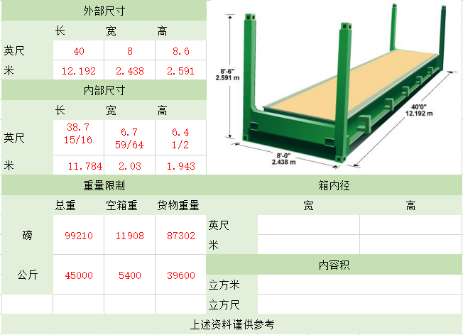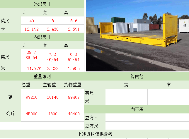 照片名稱:40'FR(Flat Rack角柱式折迭平板)