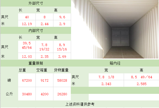 照片名稱:40'GP(General Purpose Containe) 備注:正常裝貨56CBM