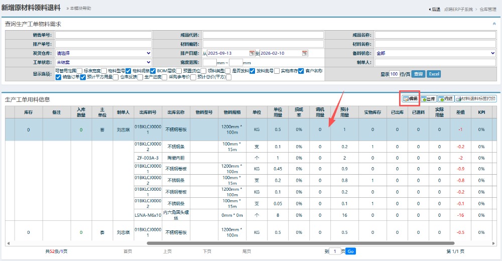 答:這個是因為領(lǐng)料單上的物料編碼和發(fā)料的編碼不一致,在“倉庫管理”》“銷售出庫管理”》“生產(chǎn)領(lǐng)料出庫”》“新增領(lǐng)料出庫單”進行編輯。 如果需要替用,也可以做工單編輯操作后再領(lǐng)料 ? ![]()