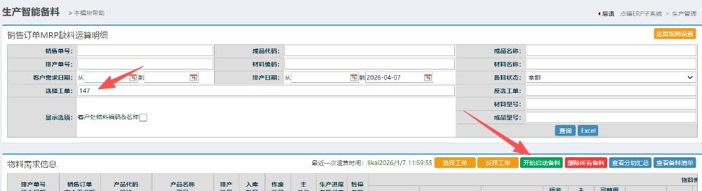 選擇后,點擊“開始啟動備料”按鈕操作