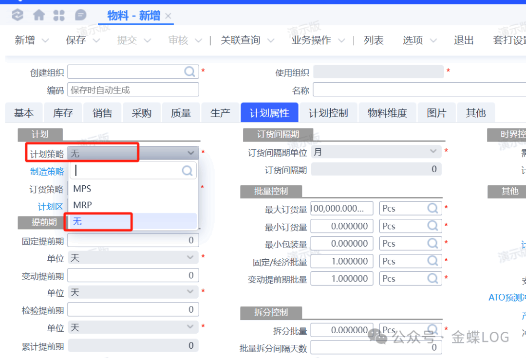 至于委外件,視企業(yè)分工而定:若由PC管理委外工序,則設(shè)為MPS件;若由MC管理委外采購,則設(shè)為MRP件。 這種劃分清晰明了,便于不同角色聚焦自己負(fù)責(zé)的物料,避免計劃重疊或遺漏。 四、什么時候設(shè)置“無”策略?“無”策略意味著該物料不參與MRP/MPS運(yùn)算,需求由人工直接下達(dá)采購申請或生產(chǎn)訂單。 哪些物料適合設(shè)為“無”?
