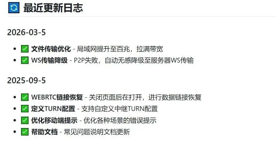 ![]() 前幾天還更新了,它其實有點像一個輕量級的局域網(wǎng)協(xié)作工具。如果你經(jīng)常需要在電腦之間傳大文件,用它會比傳統(tǒng)方式方便很多。 該文章在 2026/3/10 11:46:54 編輯過 |
