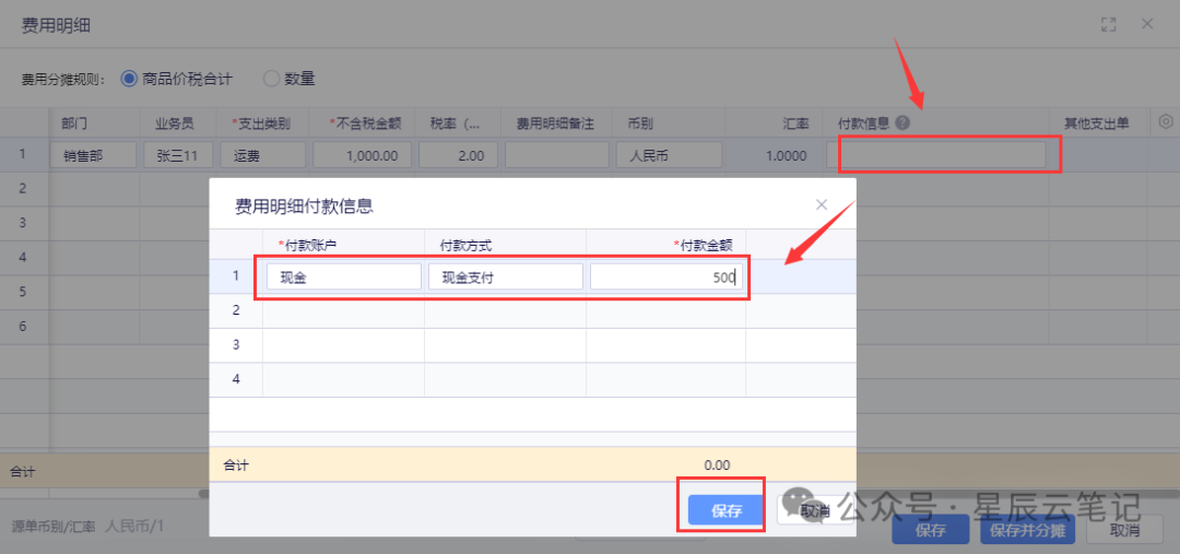 ⑤【分?jǐn)傄?guī)則】是指將銷售費(fèi)用分?jǐn)側(cè)朊織l商品行的依據(jù)。目前支持兩種:價稅合計和數(shù)量,用戶根據(jù)需要選擇。當(dāng)本次銷售的多種商品,計量單位差異較大,比如有的商品單位是件,有的商品單位是斤,此時不適合選擇“數(shù)量”的分?jǐn)偡绞?建議選擇“價稅合計”的方式分?jǐn)偂?/span> 方式二、通過費(fèi)用分?jǐn)倖畏謹(jǐn)偟綄?yīng)的業(yè)務(wù)單據(jù)(適用業(yè)務(wù)發(fā)生后才能確認(rèn)費(fèi)用場景) 【適用版本】星辰專業(yè)版、星辰旗艦版 1、業(yè)務(wù)發(fā)生所屬期間已關(guān)賬 / 結(jié)賬后,無法直接在原業(yè)務(wù)單據(jù)上追加費(fèi)用記錄;若需核算該筆費(fèi)用,可在當(dāng)前期間通過錄入 “其他支出單” 的方式單獨(dú)記錄,