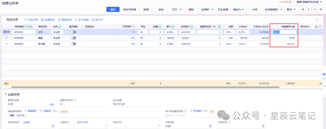 [點(diǎn)晴永久免費(fèi)OA]金蝶云星辰銷售出庫產(chǎn)生的費(fèi)用,如何處理?