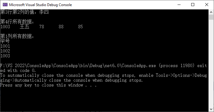 Console.WriteLine($"文件包含 {rowCount} 行,{colCount} 列數據");