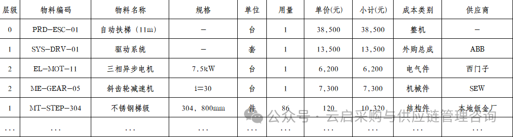 導(dǎo)讀建立一個(gè)產(chǎn)品成本BOM(BillofMaterials,物料清單)是實(shí)現(xiàn)精細(xì)化成本管理、定價(jià)決策和供應(yīng)鏈優(yōu)化的核心工具。教你如何快速建立一個(gè)采購BOMStep1:獲取準(zhǔn)確的產(chǎn)品結(jié)構(gòu)1.來源:工程圖紙、PLM系統(tǒng)、樣機(jī)拆解。2.輸出:多層級(jí)BOM樹(父項(xiàng)→子項(xiàng)→孫項(xiàng))。Step2:標(biāo)準(zhǔn)化物料編碼與命名1.建立物料主數(shù)...