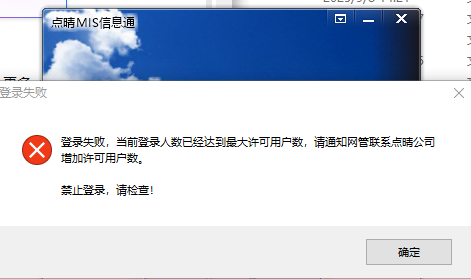 點晴MIS/OA信息通提示登錄失敗:當前登錄用戶數已經超出授權數,請聯系點晴公司增加授權數!如何解決??點晴MIS信息通PC客戶端