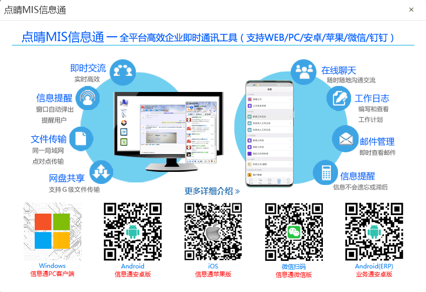 點晴MIS信息通手機APP或PC客戶端下載地址如下: